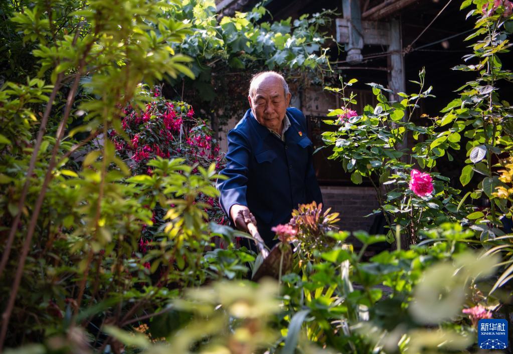 4月18日,李存德在家中澆花。新華社記者 江文耀 攝