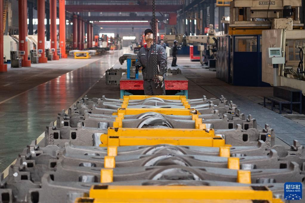 4月19日,在中車齊車公司的生產車間,工人在進行生產作業。