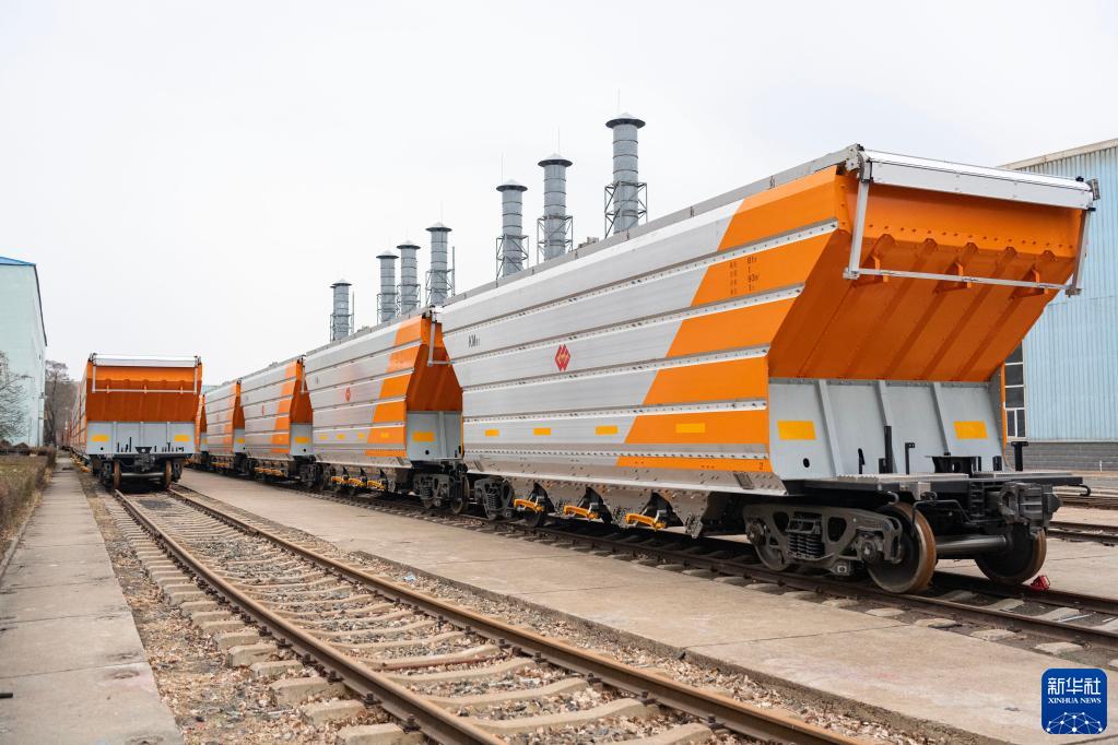 這是4月19日在中車齊車公司廠區拍攝的由該公司生產的煤炭漏斗車。