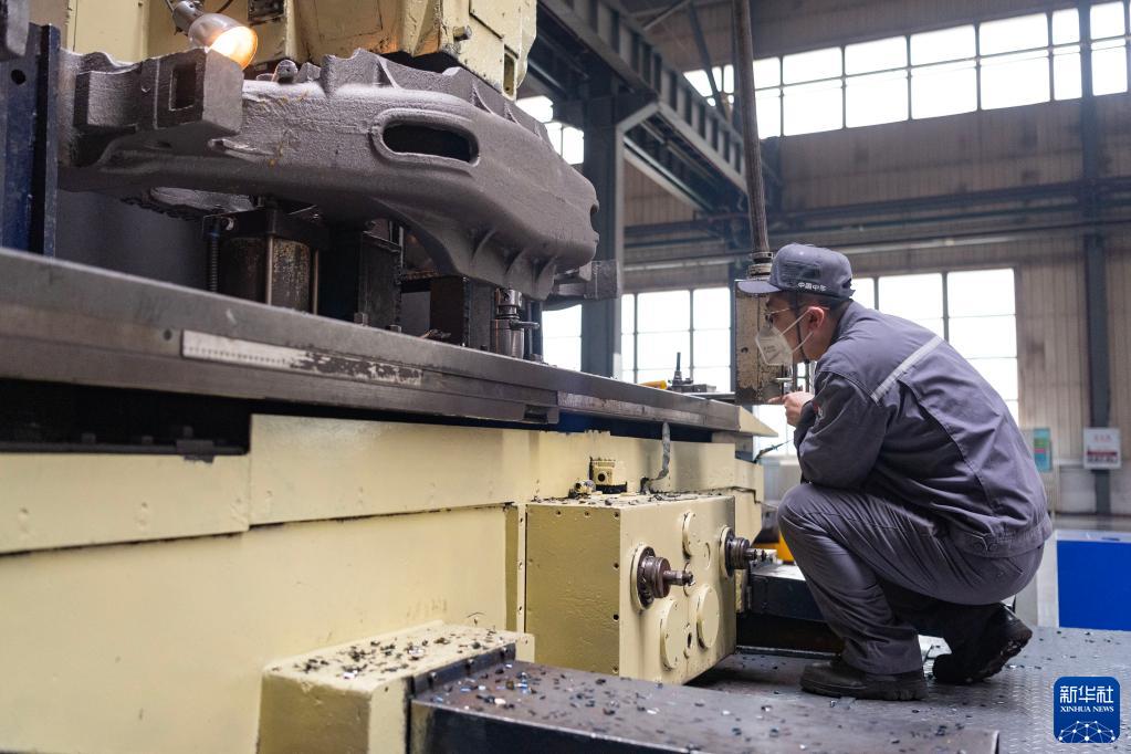 4月19日,在中車齊車公司的生產車間,工人在進行生產作業。