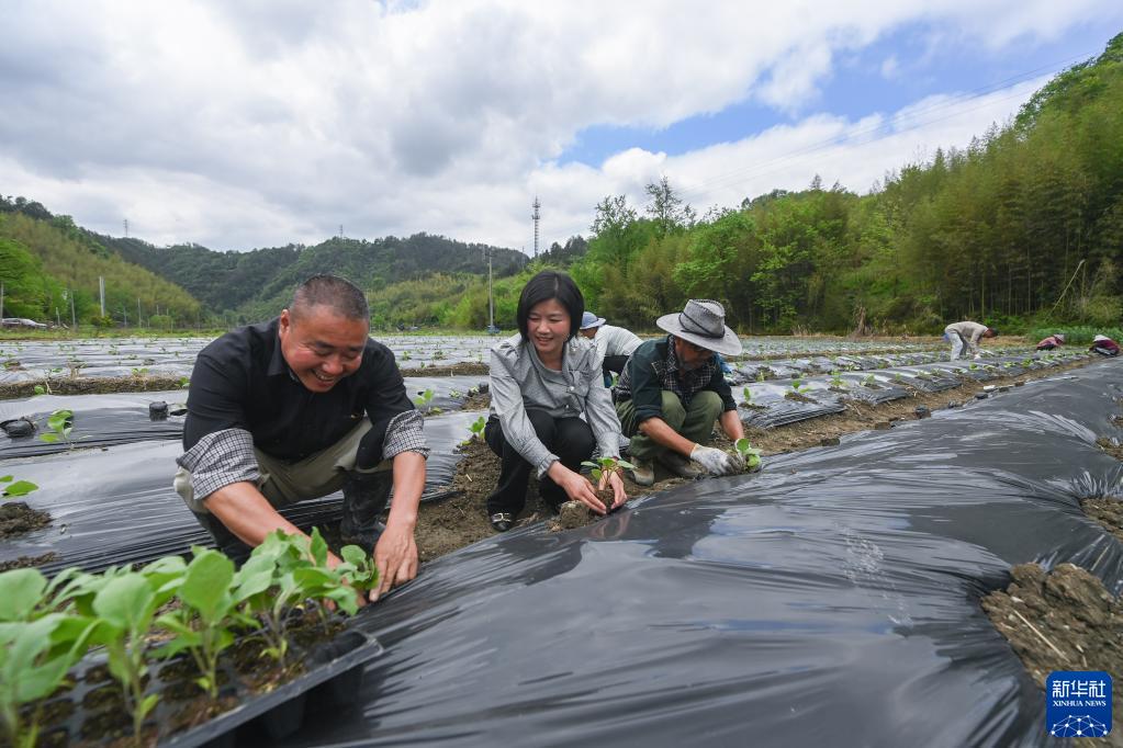 4月20日,返鄉創業人才俞冬紅(中)在位于臨安區昌化鎮后營村的蔬菜基地與農戶交流。俞冬紅成立了“昌西公社”,發揮黨建聯建各單位資源互補優勢,構建了山核桃、小香薯、高山蔬菜等農副產品“產供銷”種植、銷售對接平臺,有效助力鄉村特色產業發展。