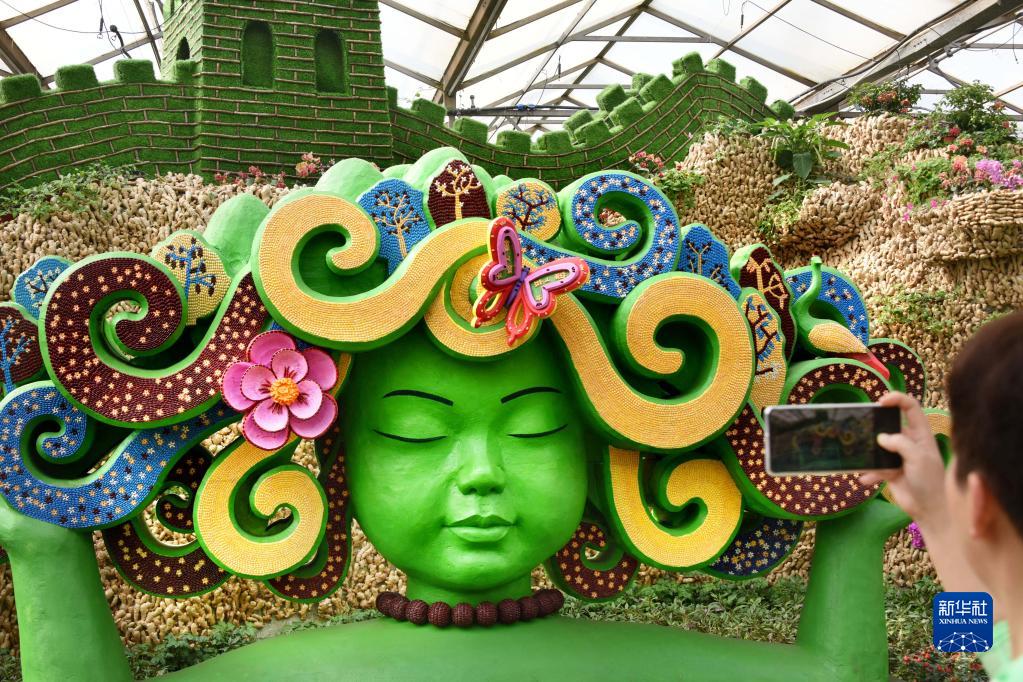 4月20日,參觀者在菜博會(huì)蔬菜文化景觀展區(qū)拍攝。
