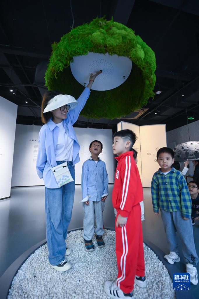 4月21日,小朋友們在老師的帶領下在嘉興市圖書館元宇宙閱讀體驗館的閱聽體驗區聆聽自然界的各種聲音。