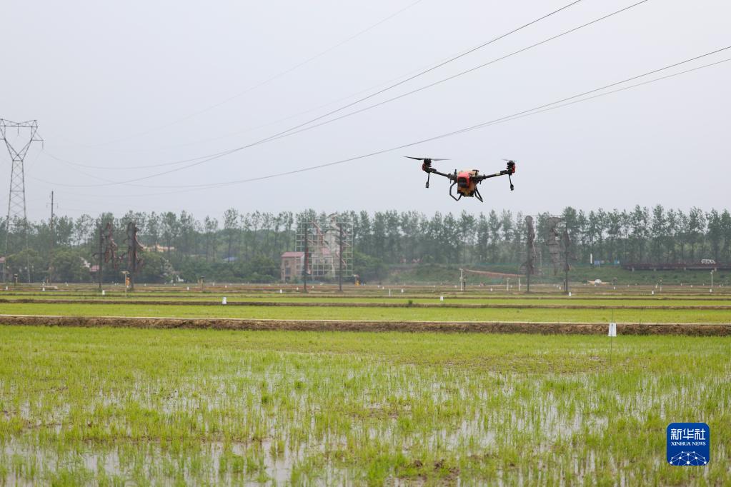 4月21日,在湖南省益陽(yáng)市赫山區(qū)中塘村,植保無人機(jī)在田間打藥。