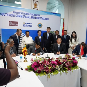 中國招商局港口控股有限公司、斯里蘭卡港務局和當?shù)匾黄髽I(yè)21日在科倫坡正式簽署南亞商貿(mào)物流中心項目協(xié)議,共建南亞區(qū)域現(xiàn)代化多功能物流中心。南亞商貿(mào)物流中心項目位于科倫坡港內(nèi),總投資3.92億美元,是按“建設-運營-移交”模式投資開發(fā)的臨港多層倉儲物流項目,將開展進出口拆裝箱、保稅倉儲、自由港業(yè)務、倉庫租賃和臨港商貿(mào)物流等業(yè)務。項目合作方已在斯里蘭卡注冊成立合資公司。