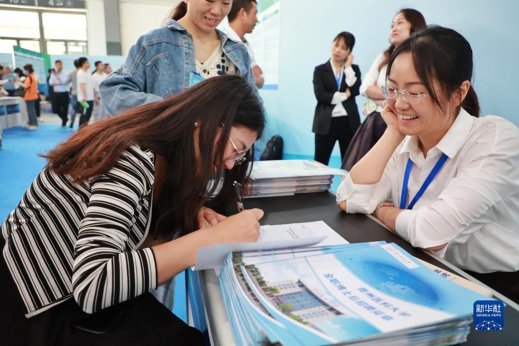 4月22日,應聘者在填寫應聘資料。