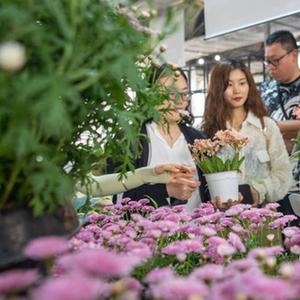 4月21日,游客在位于重慶市大足區(qū)雍溪鎮(zhèn)的天華百卉園花卉種植基地內選購花卉。
