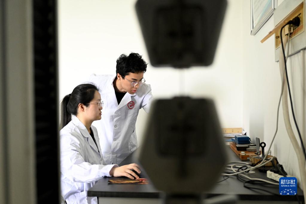 4月19日,在中科院合肥物質科學研究院,固體物理研究所特種航天金屬材料研究團隊的學生在測試“嫦娥鋼”材料的拉伸性能。