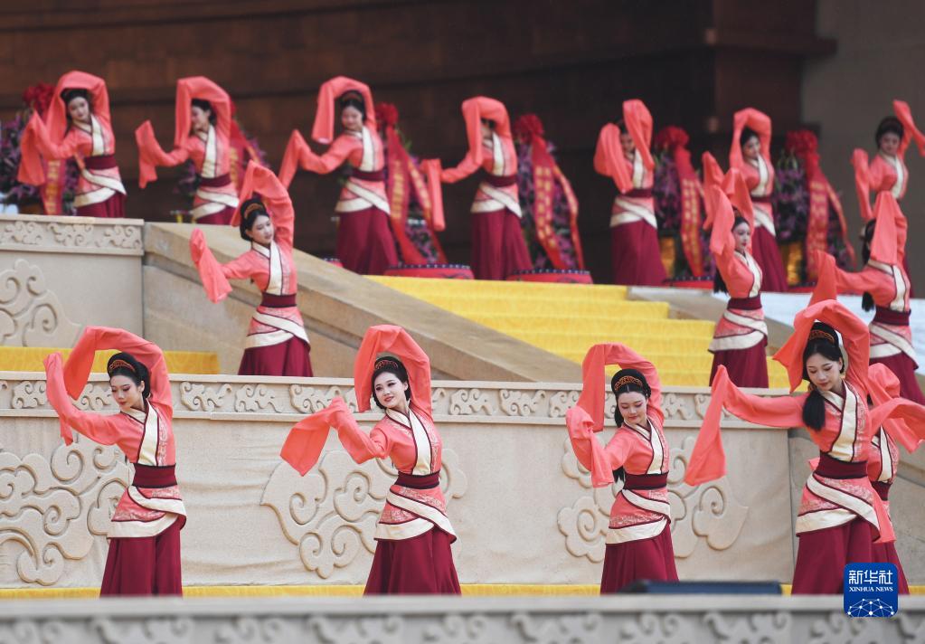 4月22日,演員在癸卯年黃帝故里拜祖大典上表演。