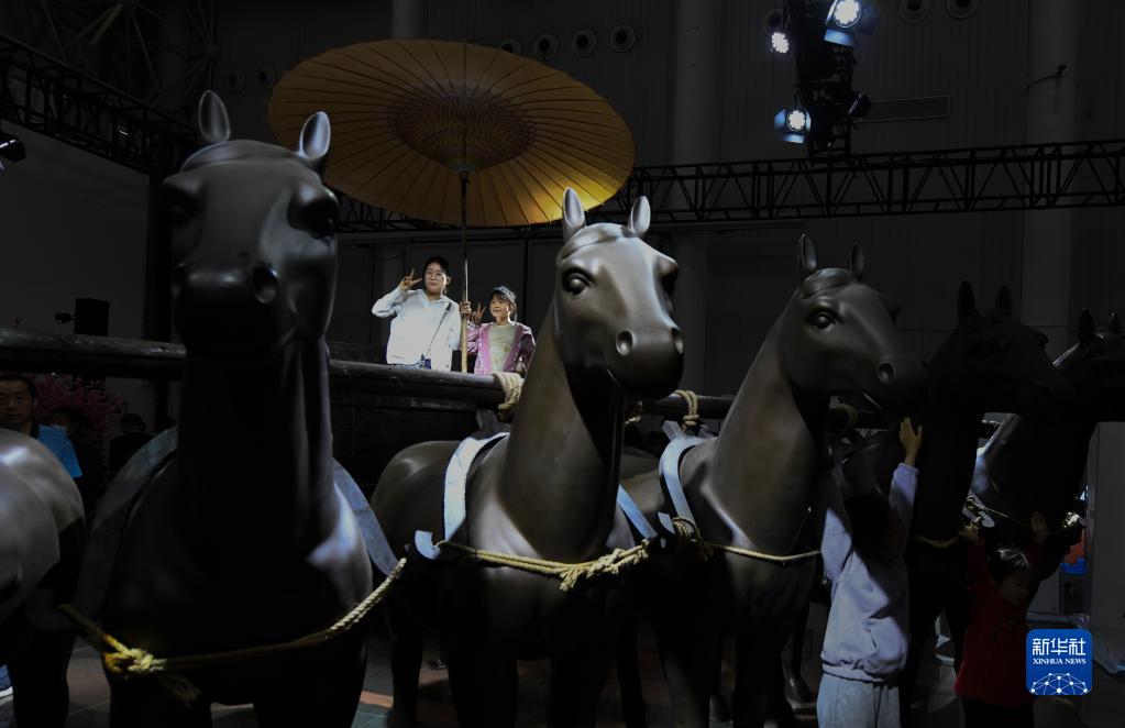 4月22日,觀眾在博覽會(huì)上體驗(yàn)楚王車馬陣。