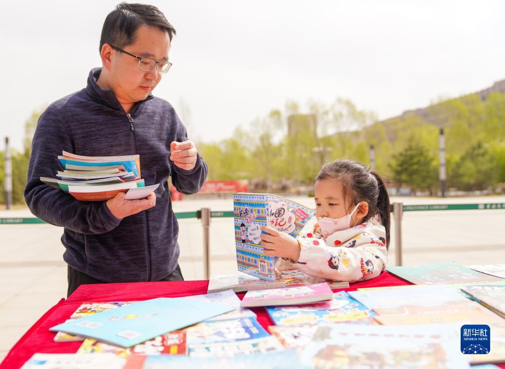 4月22日,市民在吉林省圖書館前的“換書大集”挑選圖書。
