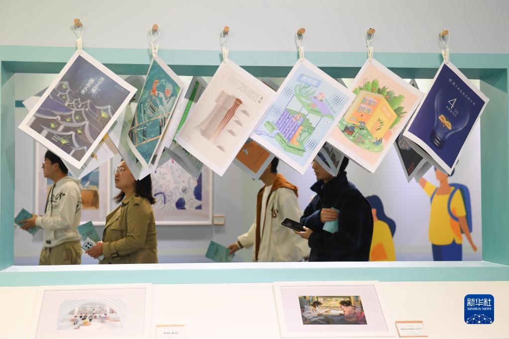 4月23日,人們在“書香滿中國”公益廣告展上參觀。