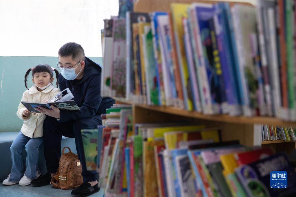 4月23日,在黑龍江省圖書館親子共讀閱覽室,孩子和家長一起閱讀書籍。