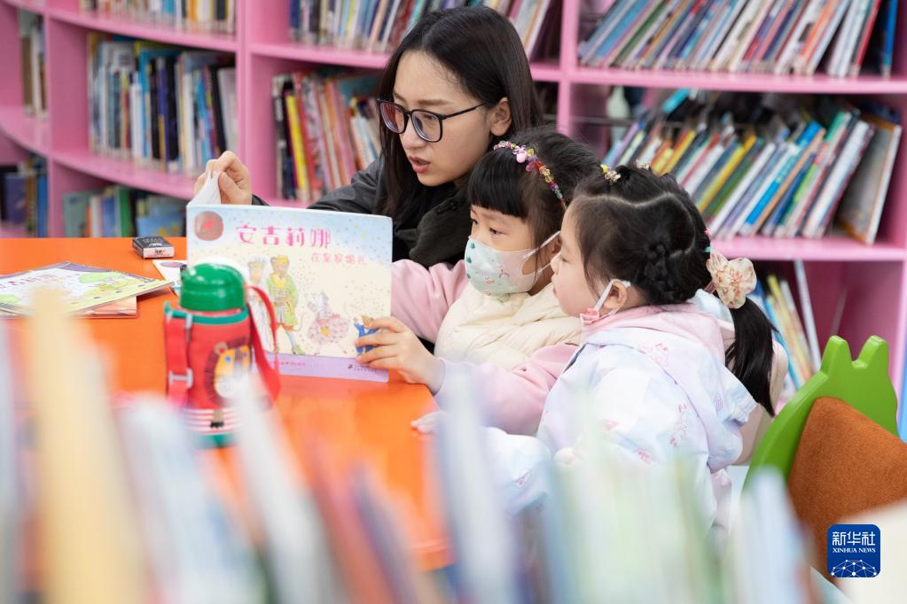 4月23日,在黑龍江省圖書館親子共讀閱覽室,孩子和家長一起閱讀書籍。