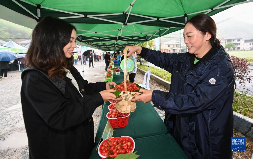 當日,浙江省杭州市臨安區錦南街道舉辦“產業共富聯盟成立暨櫻桃采摘節”活動。通過現場采摘和產品展銷的形式,借助農產品線上推介及直播帶貨宣傳,為當地的水果產業與消費市場牽線搭橋,推動鄉村產業高質量發展、幫助農民增收致富。