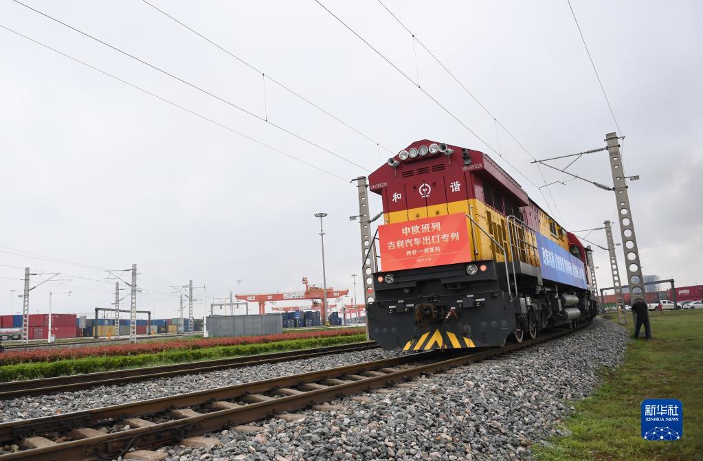 4月23日,中歐班列長安號吉利汽車出口專列從西安國際港站駛出。