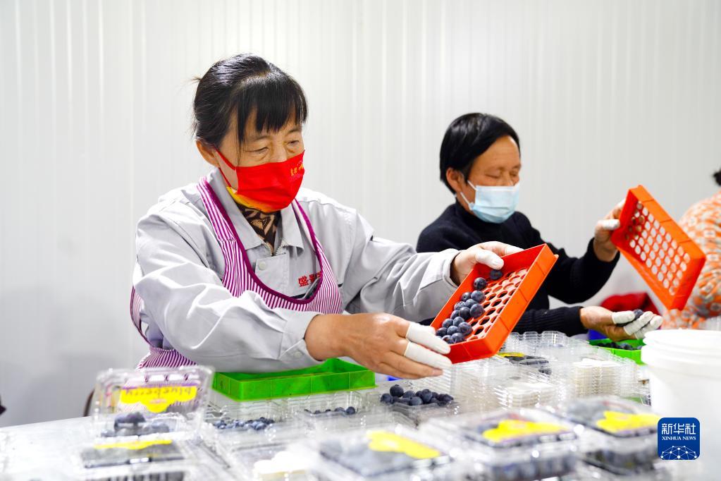 4月23日,村民在惠民縣淄角鎮(zhèn)鄉(xiāng)村振興產(chǎn)業(yè)示范基地分揀藍(lán)莓。