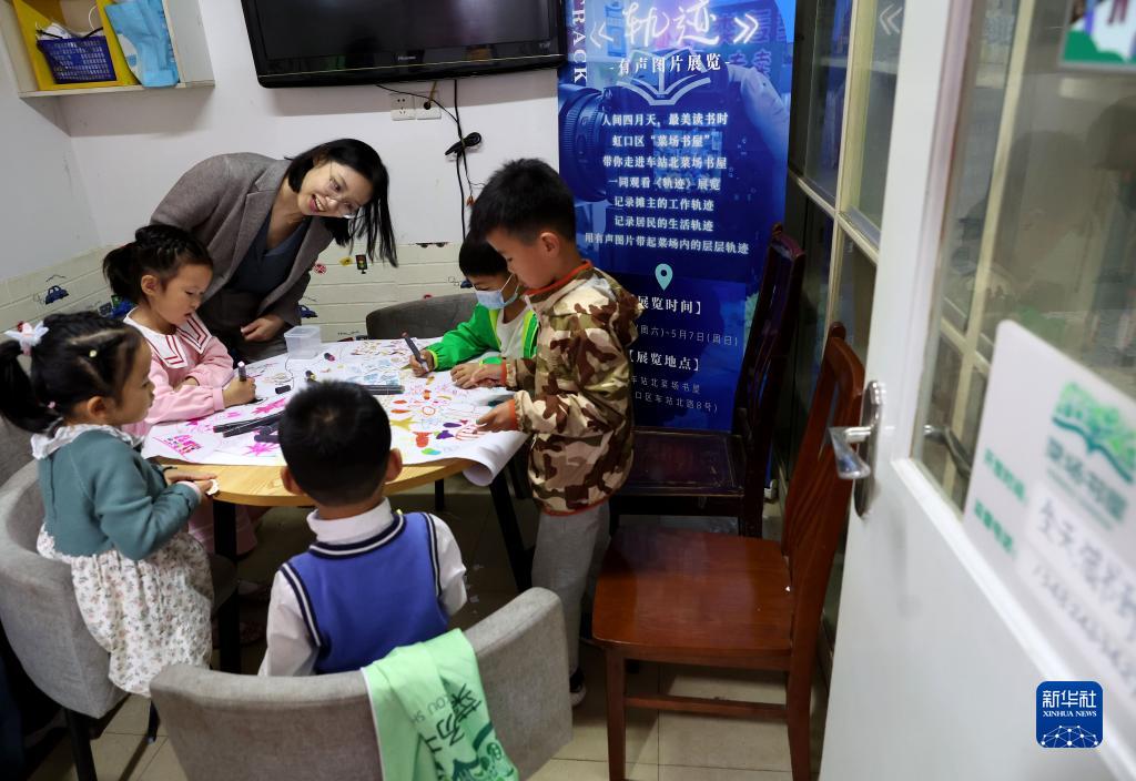 4月22日,車站北菜市場的書屋舉辦展覽和少兒閱讀繪畫等活動,迎接“世界讀書日”。