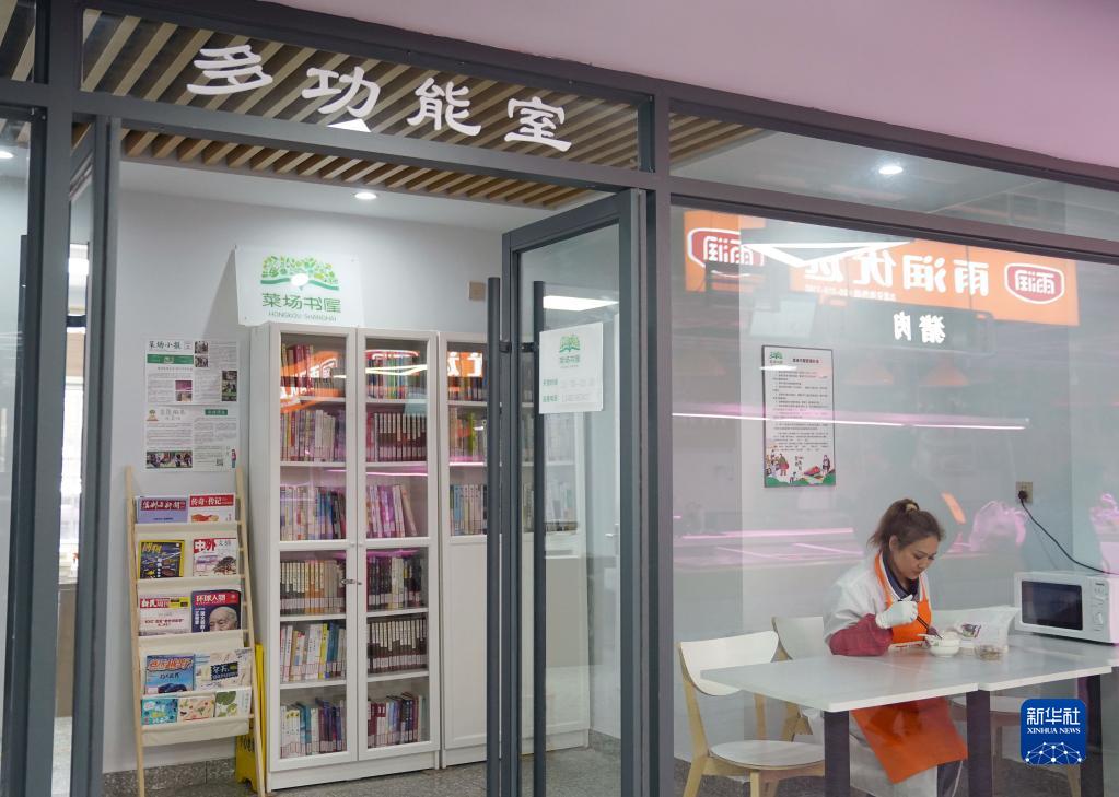 2010年,上海市虹口區圖書館在江灣鎮街道的福賜菜場投放了約600冊圖書,供菜場攤主等外來務工人員免費借閱,第一家“菜場書屋”誕生。現在,當年的福賜菜場已改名為車站北菜市場,在完成標準化、智慧化改造的菜場內,菜場書屋的環境也得到優化,功能進一步提升。