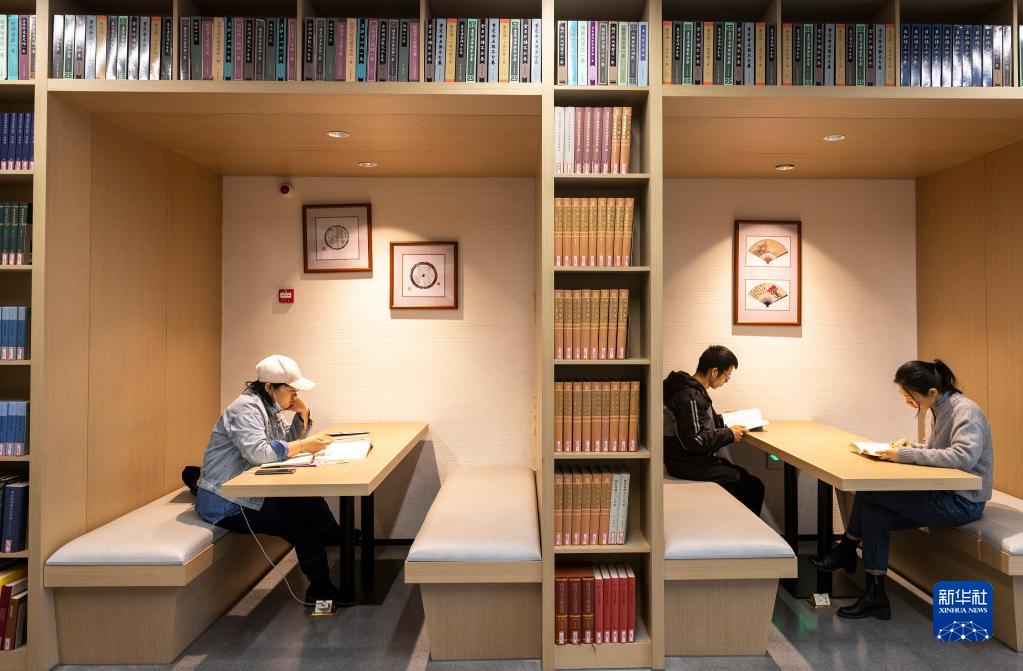4月23日,市民在浙江省諸暨市陶朱街道浣江書房金石學(xué)館看書。