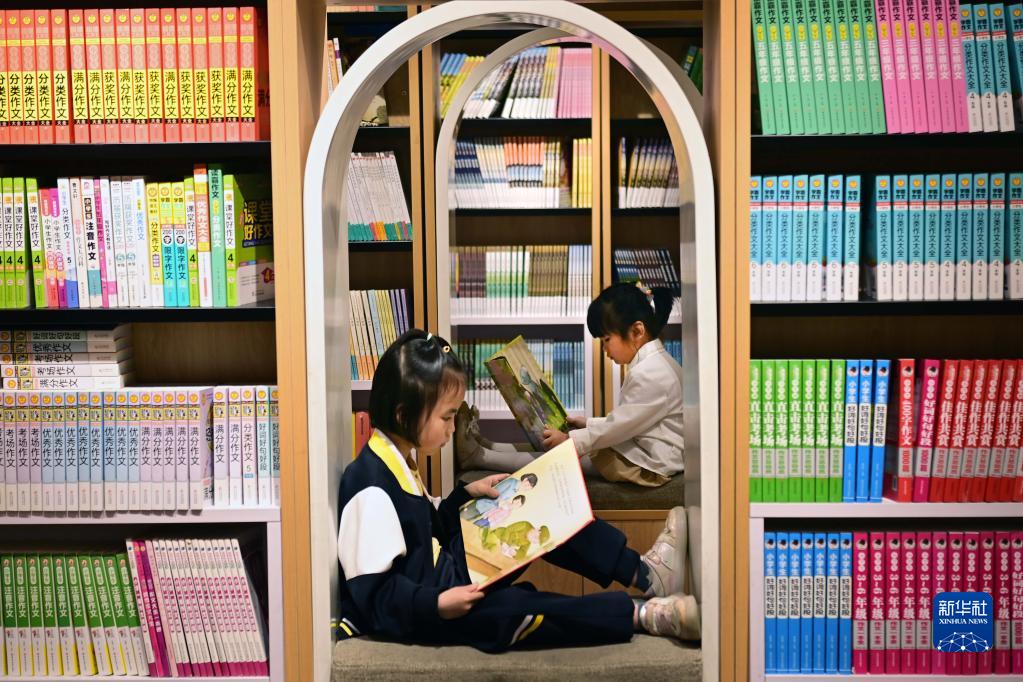 4月19日,位于江西省宜春市萬載縣康樂街道的金星書吧內,小朋友在閱讀書籍。