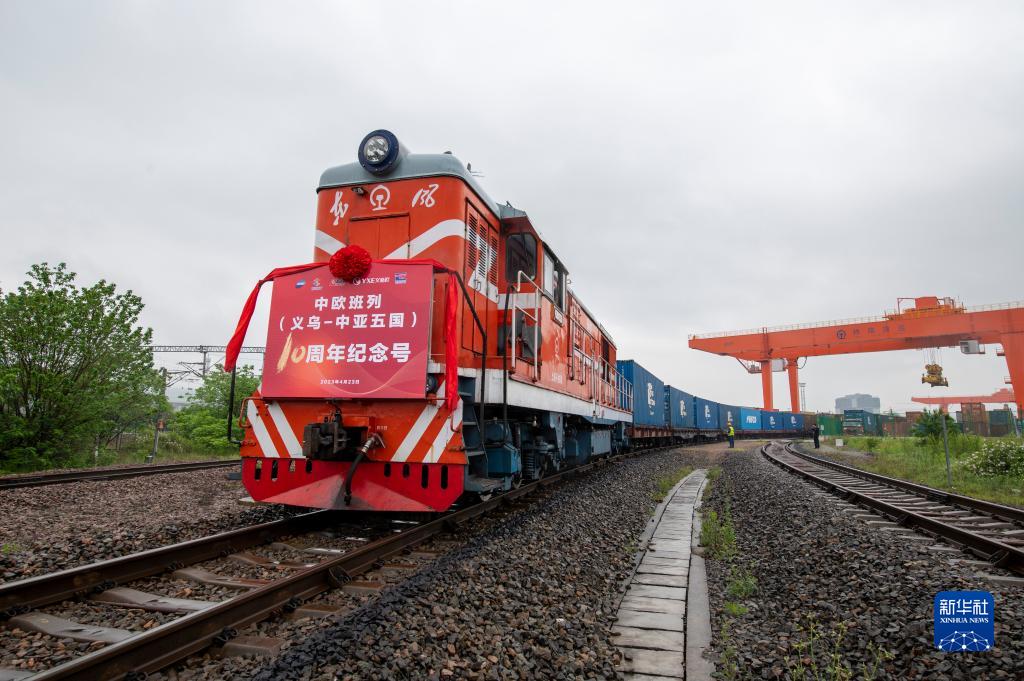 當日,載有100標準箱貨物的“義烏-中亞五國10周年紀念號”中歐班列在義烏西站鳴笛啟程,前往中亞五國,該趟列車也是義烏與中亞五國間開行的第2024列中歐班列。