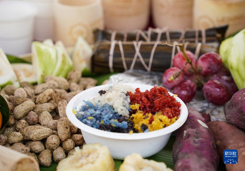這是4月23日在海南省樂東黎族自治縣拍攝的苗族五色飯。
