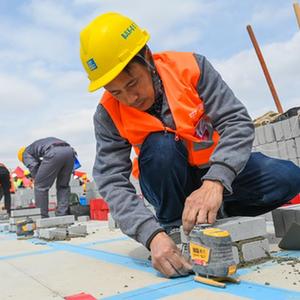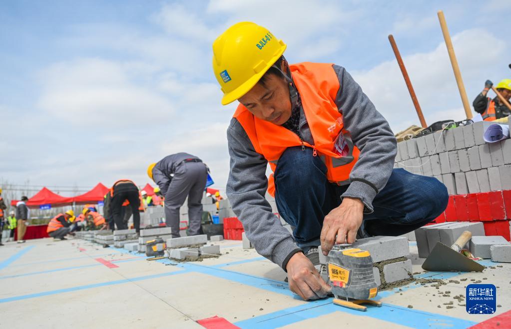 4月24日,建筑工人在參加職業(yè)技能比拼。