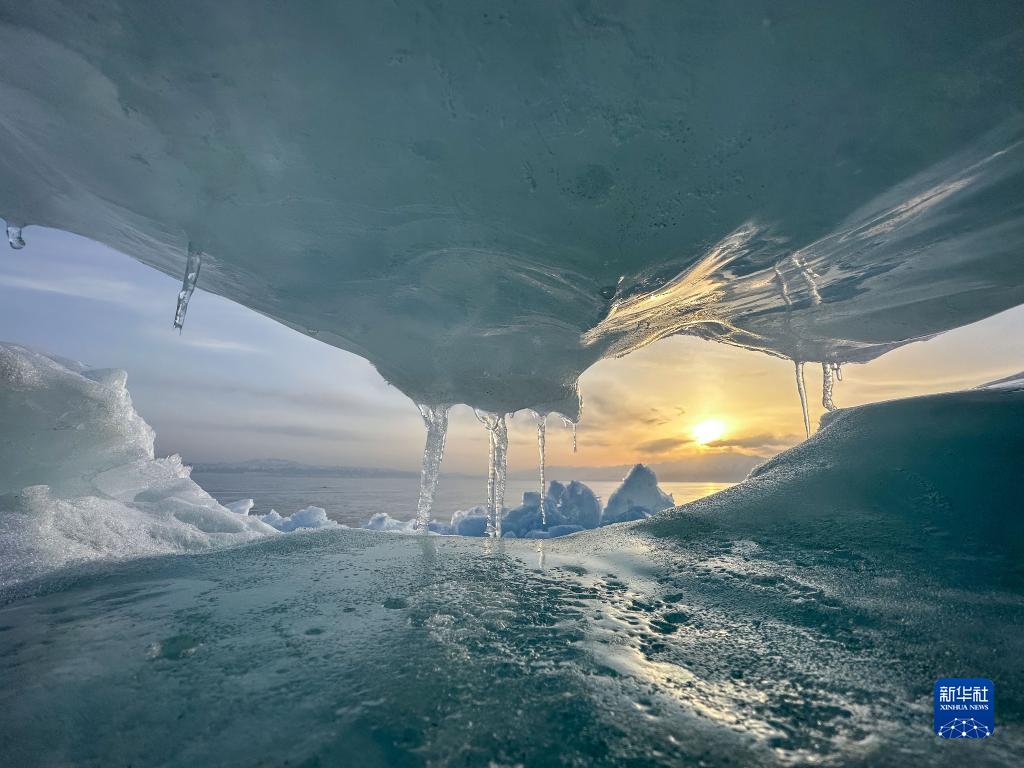 新疆博爾塔拉蒙古自治州,夕陽下的賽里木湖(4月6日攝)。