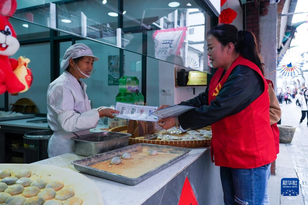 4月24日,在建德市梅城鎮古街,志愿者在進行亞運知識宣傳。