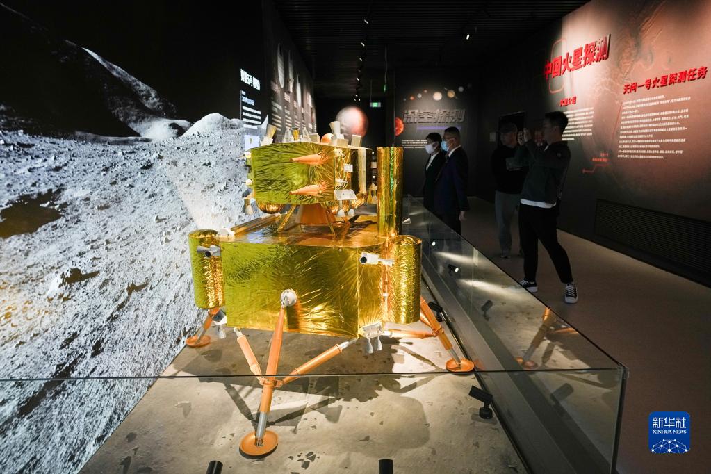 4月24日,觀眾在中國航天博物館參觀展出的嫦娥五號月球車模型。