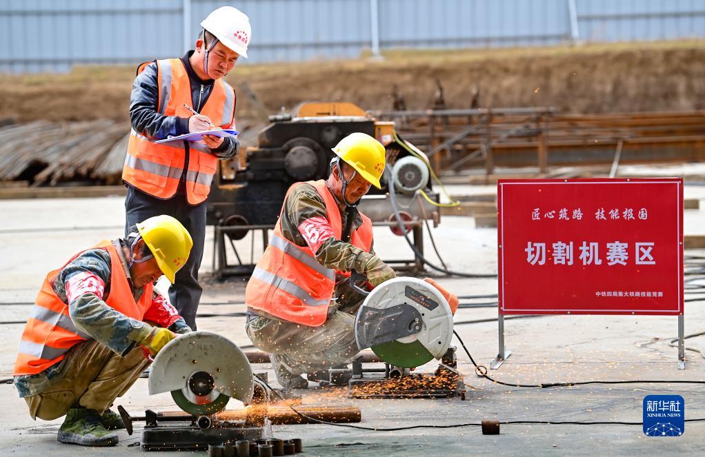 4月24日,建設(shè)者參加切割機(jī)操作項(xiàng)目比賽。