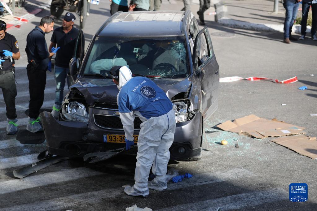 4月24日,警察在耶路撒冷駕車(chē)襲擊事件現(xiàn)場(chǎng)工作。