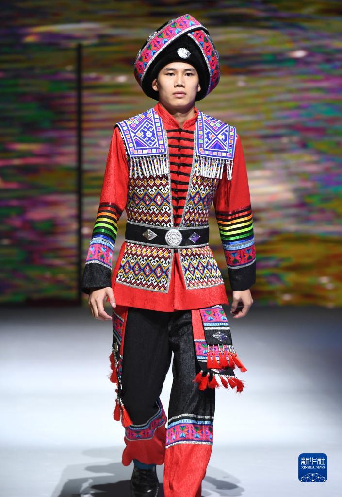 模特在廣西南寧市廣西文化藝術中心展示民族元素服飾(4月24日攝)。