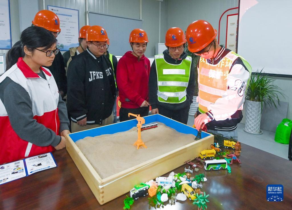 4月25日,龍泉街道心理咨詢師(左一)用心理沙盤游戲引導(dǎo)工地勞動者釋放壓力,促進心理健康。
