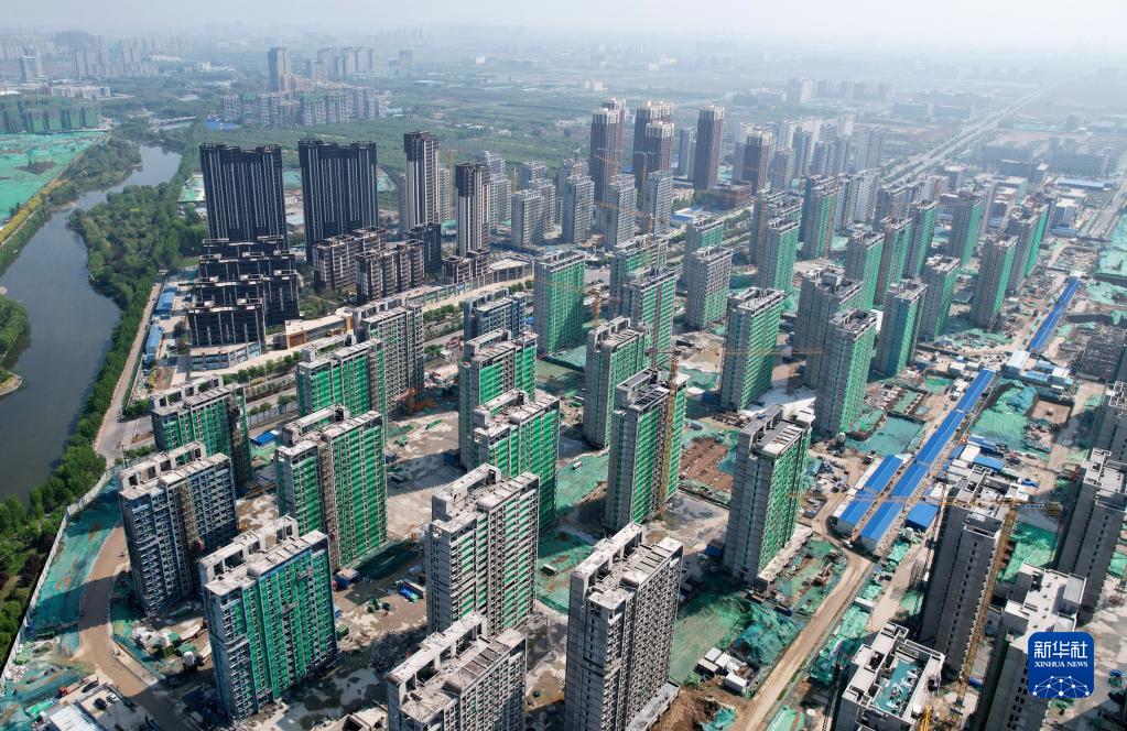 4月25日拍攝的中鐵二十局承建的石家莊市高新技術(shù)產(chǎn)業(yè)開發(fā)區(qū)集中安置區(qū)棚戶區(qū)改造項目建設(shè)工地(無人機照片)。