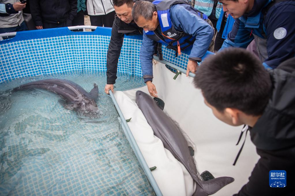 當日,來自長江天鵝洲故道的4頭遷地保護長江江豚分批順利放歸進入長江干流新螺和石首江段。這是我國首次開展遷地保護長江江豚野化放歸工作,此舉對促進長江江豚自然種群數量回升,推動長江江豚保護技術發展具有重要意義。