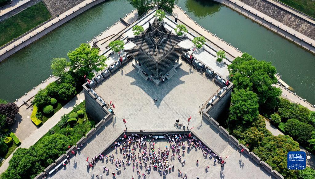 西安明城墻東南角樓(4月19日攝,無人機照片)。