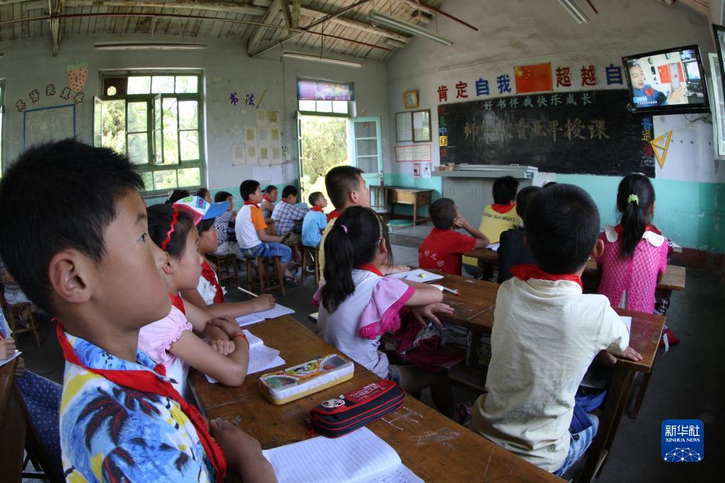 在山東省煙臺市福山區張格莊鎮張格莊中心小學,師生們在收看中國首次太空授課(資料圖片,2013年6月20日攝)。當日,神舟十號航天員在天宮一號開展基礎物理實驗。進行太空授課的航天員王亞平曾就讀于山東省煙臺市福山區張格莊鎮張格莊中心小學,王亞平成為這所山村小學的驕傲。