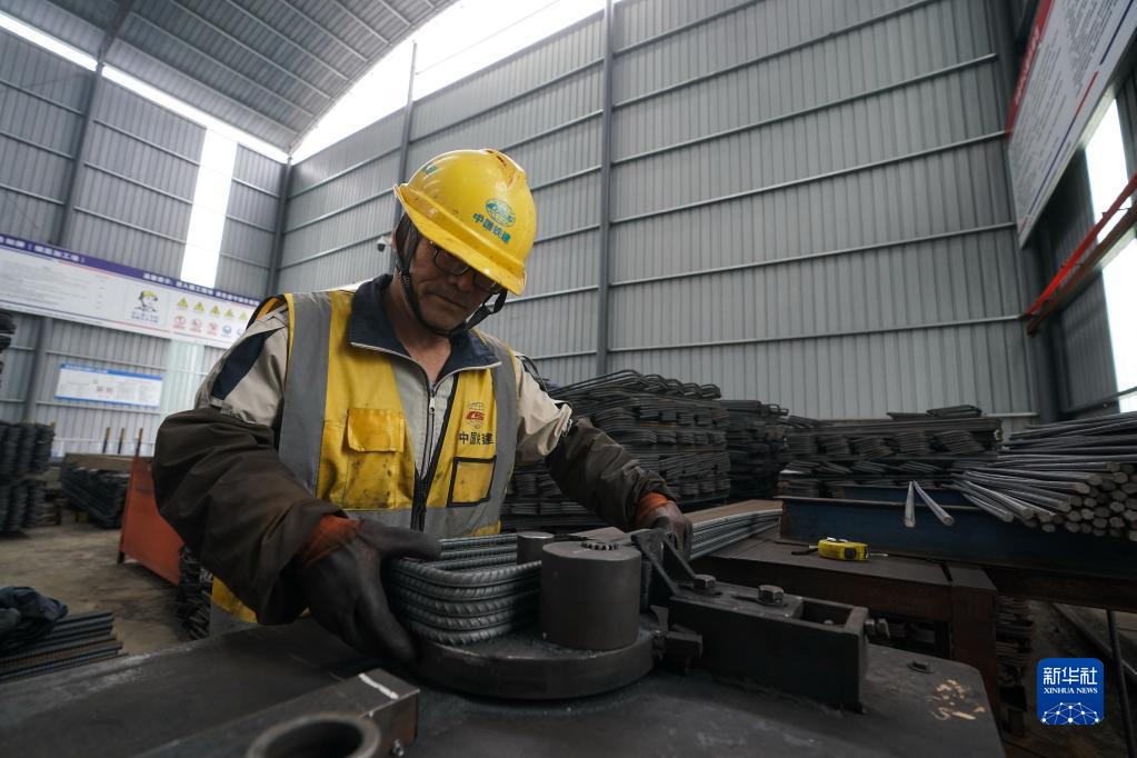 4月25日,中鐵二十局建設(shè)者在蘇臺(tái)高速公路七都至桃源段ST-QL5標(biāo)預(yù)制梁場加工鋼筋。