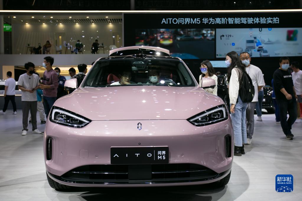 4月25日拍攝的亮相上海車展的最新發(fā)布的AITO問(wèn)界M5。