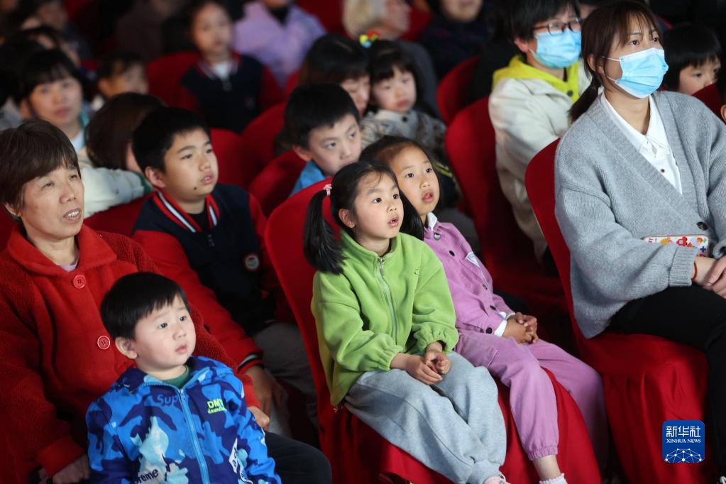 4月24日晚,在德清縣禹越鎮(zhèn)東港村文化禮堂,村民們?cè)谟^看皮影戲。