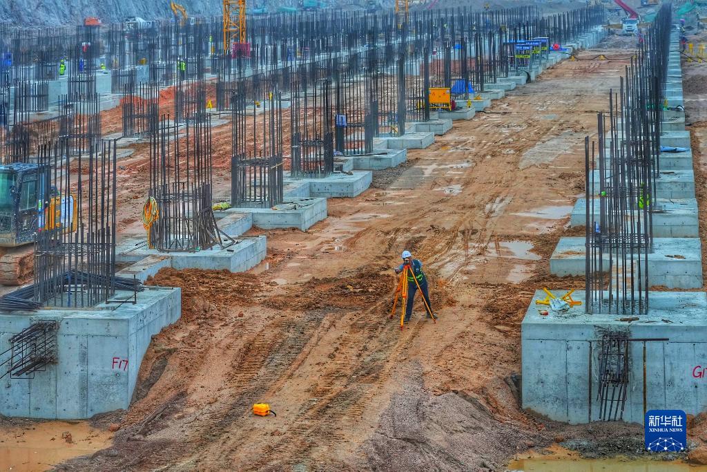 中鐵上海工程局施工人員在深圳地鐵5號線上水徑停車場建設(shè)現(xiàn)場測量(4月25日攝)。