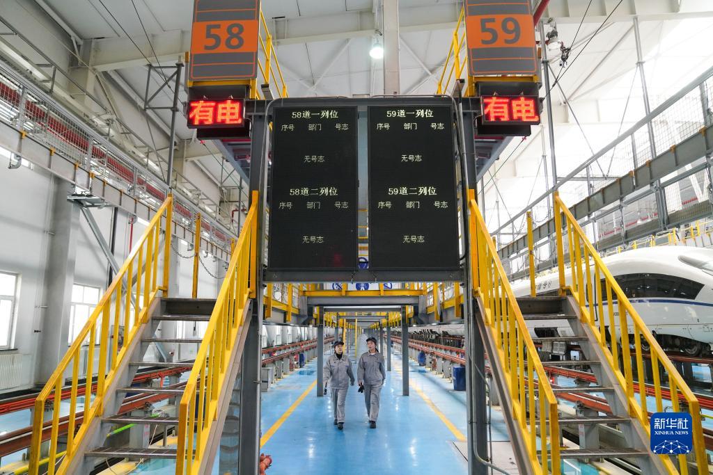 在中國鐵路哈爾濱局集團有限公司哈爾濱動車段整備庫,“雪絨花”女子班組的機械師們正緊張地為動車段配屬的動車組進行檢修作業,為即將到來的“五一”小長假鐵路運輸做好運力安全保障。