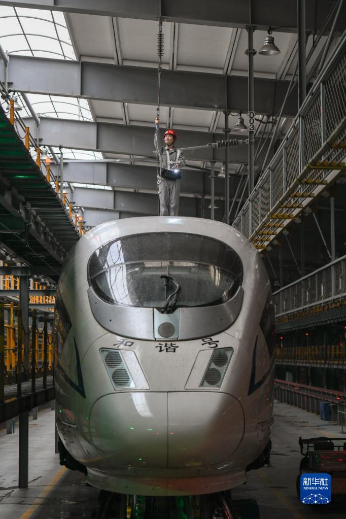 在中國鐵路哈爾濱局集團有限公司哈爾濱動車段整備庫,“雪絨花”女子班組的機械師們正緊張地為動車段配屬的動車組進行檢修作業(yè),為即將到來的“五一”小長假鐵路運輸做好運力安全保障。
