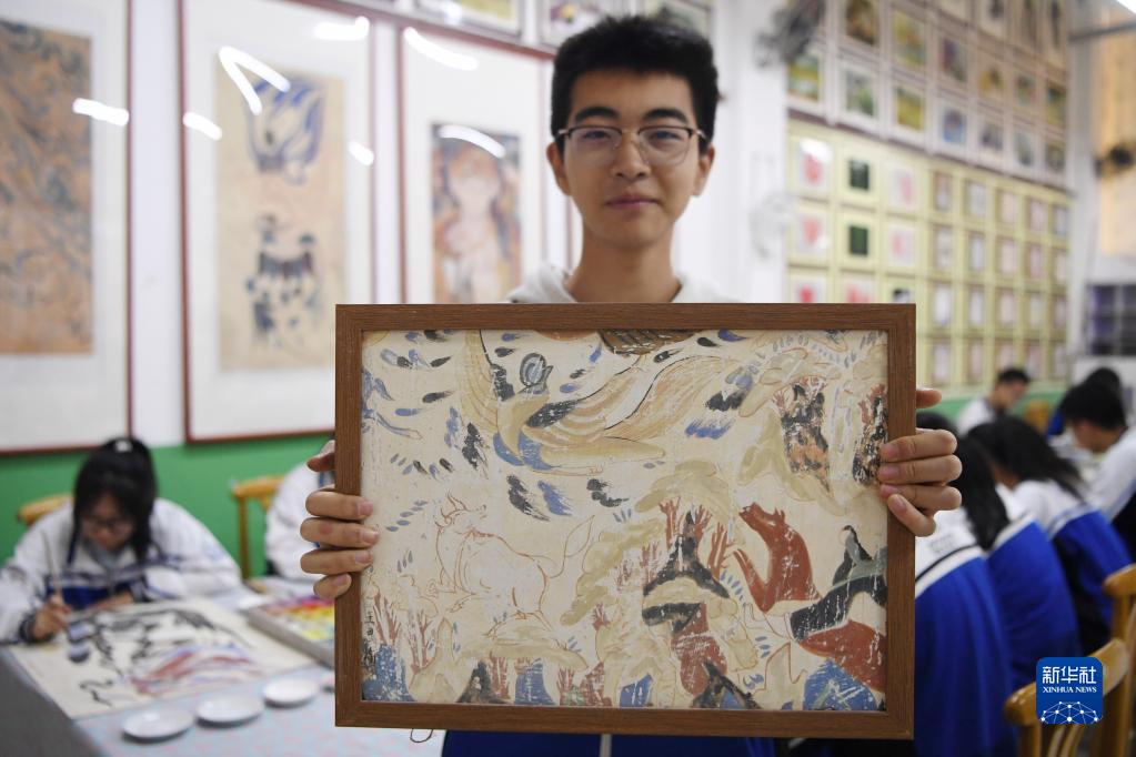 近年來,甘肅省敦煌市敦煌中學(xué)將敦煌壁畫藝術(shù)引入校園,整合專業(yè)師資力量,通過美術(shù)課堂、社團(tuán)活動和主題實(shí)踐的方式,加強(qiáng)學(xué)生對敦煌壁畫藝術(shù)的了解,讓有興趣的學(xué)生在校園里開展壁畫臨摹和藝術(shù)創(chuàng)作,豐富校園文化生活,讓學(xué)生感受敦煌文化的魅力。
