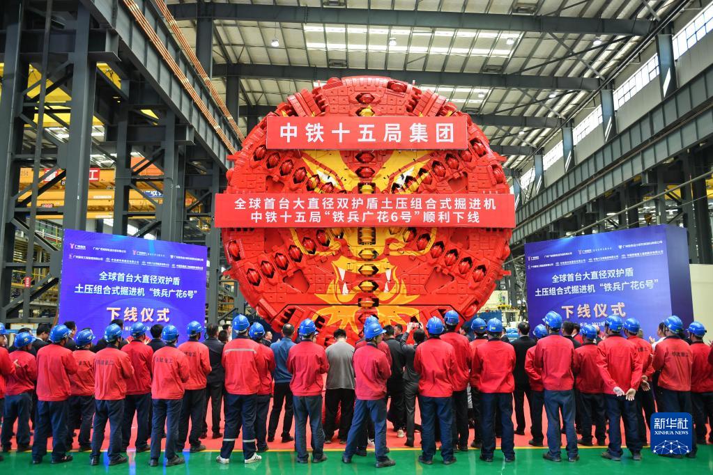 當(dāng)日,大直徑雙護(hù)盾土壓組合式掘進(jìn)機(jī)“鐵兵廣花6號(hào)”在位于湖南省長(zhǎng)沙市的中國(guó)鐵建重工集團(tuán)長(zhǎng)沙第二產(chǎn)業(yè)園下線。“鐵兵廣花6號(hào)”直徑8.9米,總長(zhǎng)131米,總重約1500噸,由中國(guó)鐵建重工集團(tuán)和中鐵十五局集團(tuán)聯(lián)合打造,下線后將被應(yīng)用于廣州東至花都天貴城際項(xiàng)目京白區(qū)間施工。