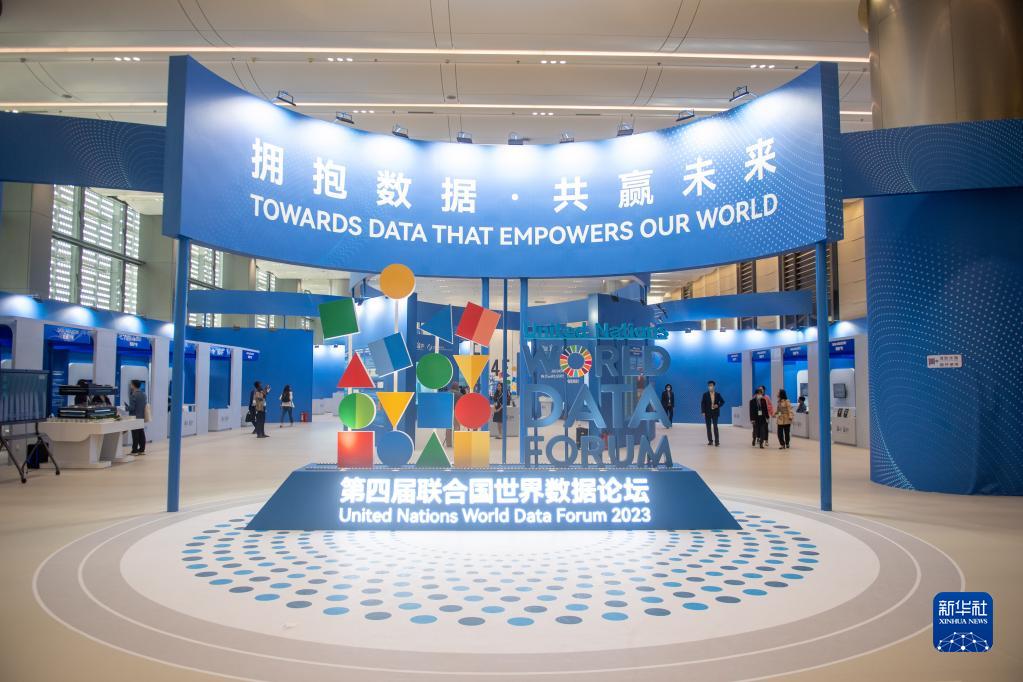 這是4月26日拍攝的第四屆聯(lián)合國世界數(shù)據(jù)論壇“數(shù)據(jù)賦能與協(xié)同”展覽展示區(qū)。