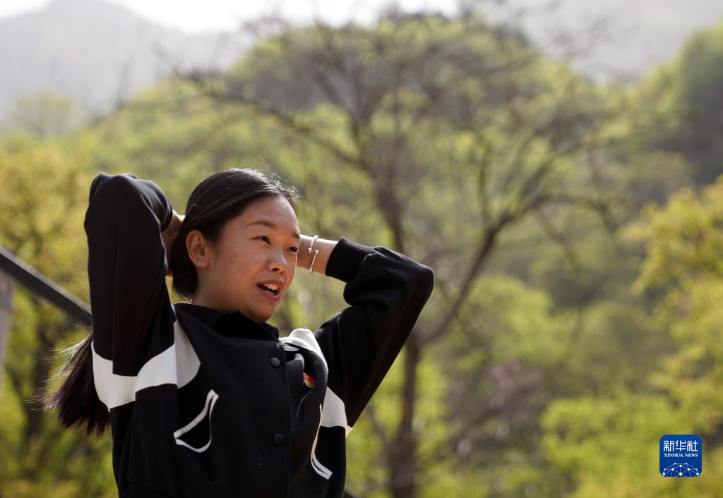 陳曉麗在幫村民胡金英干活前扎起頭發(4月18日攝)。新華社記者 李安 攝