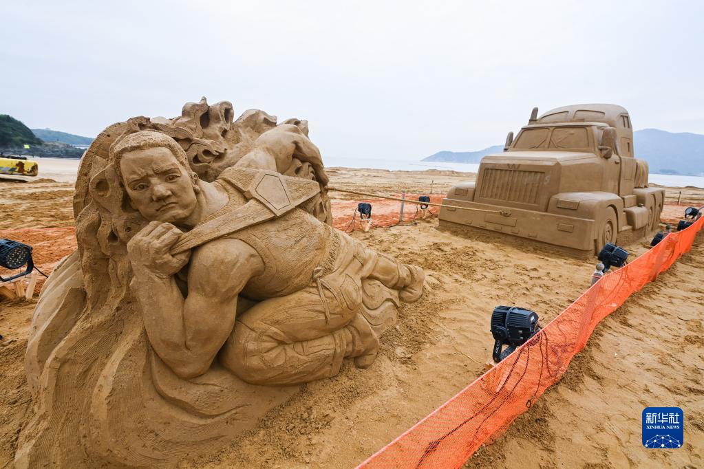 近日,第二十四屆舟山國際沙雕節(jié)在浙江省舟山市朱家尖南沙景區(qū)舉行。本屆沙雕節(jié)以“動感亞運”為主題,展出了50多件沙雕作品,吸引游客前來參觀游玩。